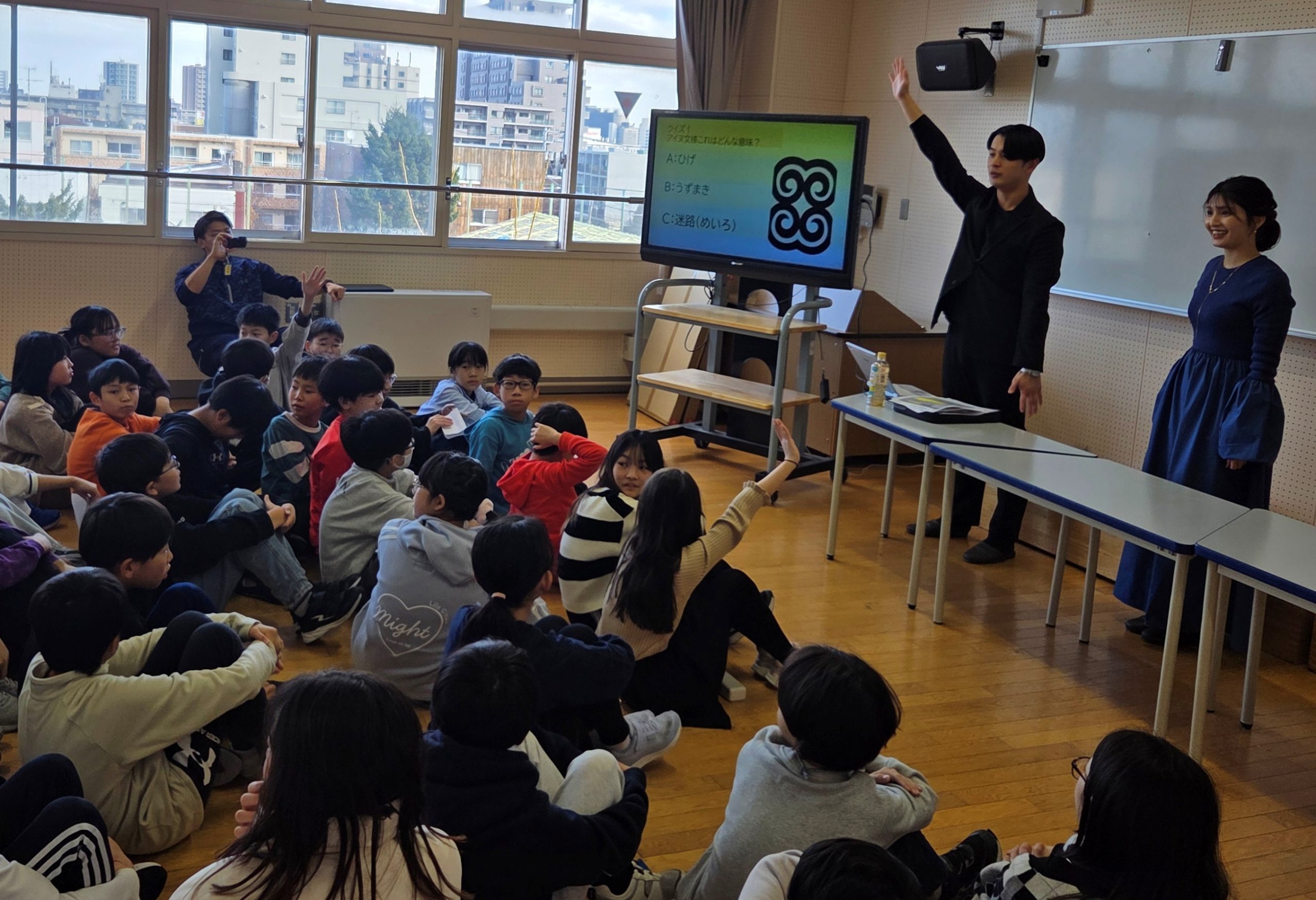 札幌市内の小学校を対象にSTVアナウンサーが「アイヌ絵本の読み聞かせ」を行う出前授業。今回は札幌市立宮の森小学校にお邪魔しました。参加してくれたのは6年生の皆さんです。講師は久保明日香アナウンサーと野見山大アナウンサー。出前授業は毎回、担当する二人のアナウンサーが構成を考えています。さて、今回はどんな授業になるのでしょうか?