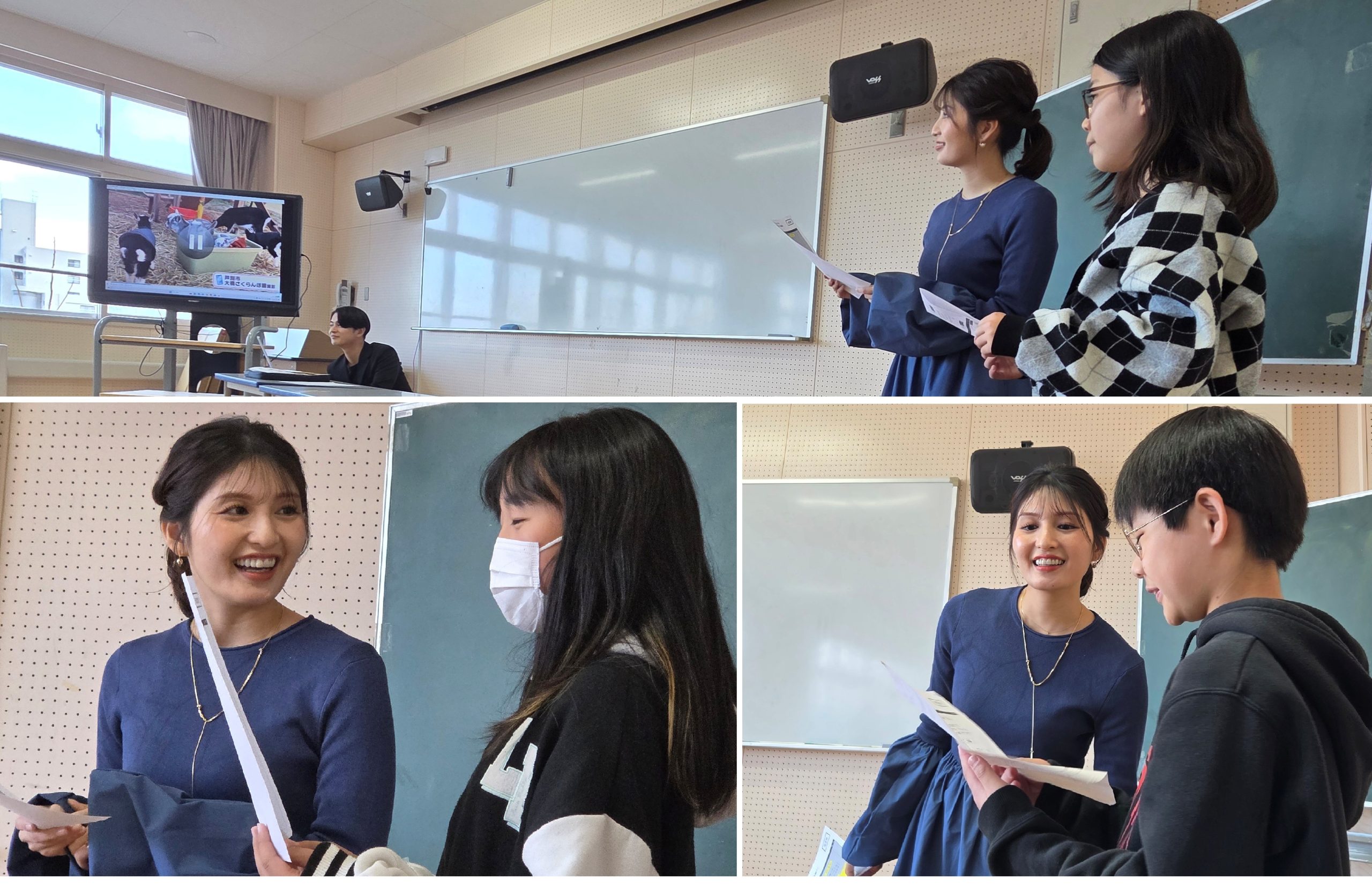アナウンサー体験では6名の生徒の皆さんが「ペットの投稿動画にナレーションをつける」「ファイターズ戦のホームラン実況」などに挑戦してくれました。映像にタイミングを合わせて、落ち着いて原稿を読むことができていました。実際にやってみると難しいのですが、皆さん、とても上手でした!