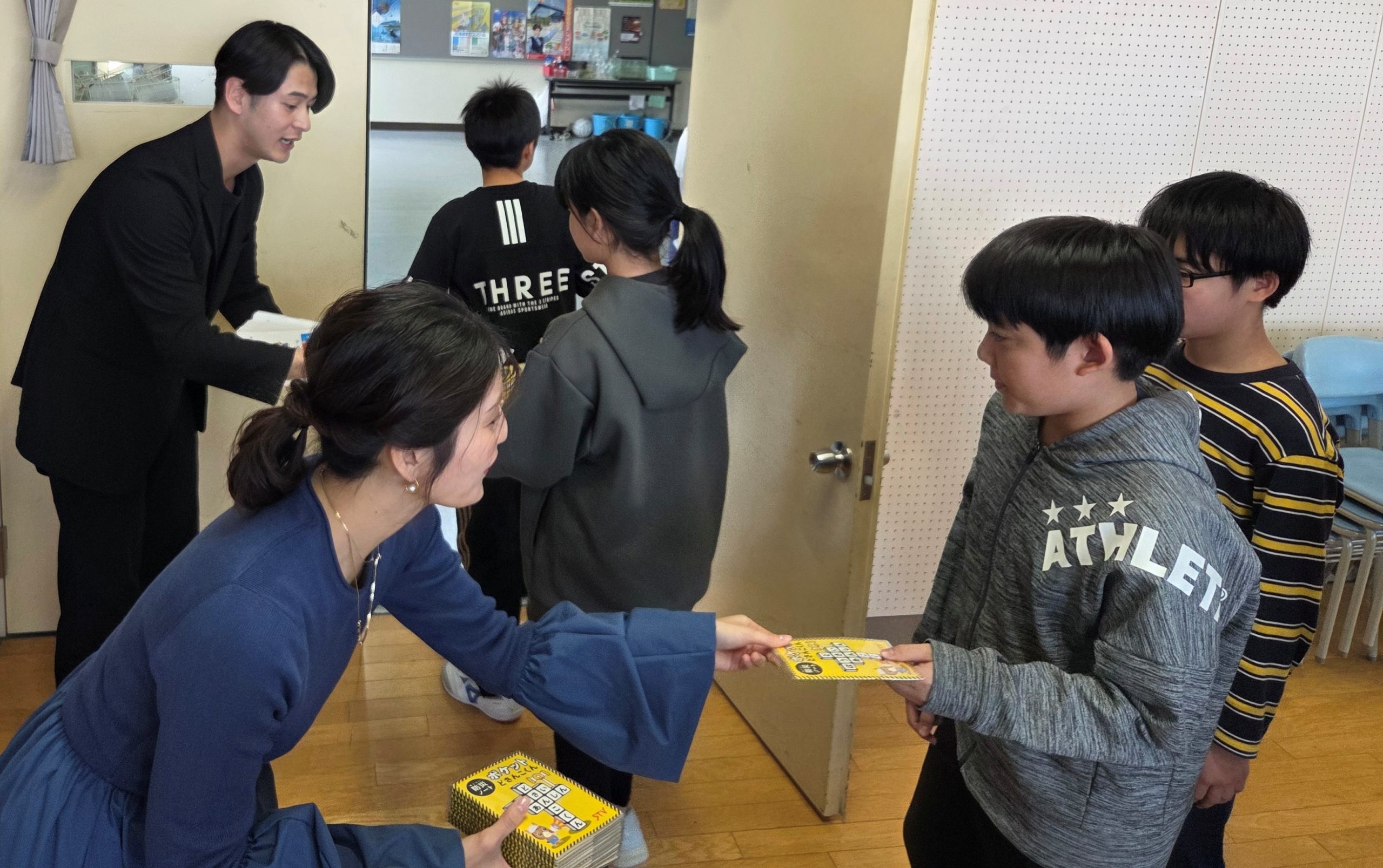 最後は一人一人に手渡しで防災手帳「ポケットどさんこくん」をプレゼントしました。宮の森小学校の皆さん、最後まで集中して授業を受けてくれてありがとうございました!!!